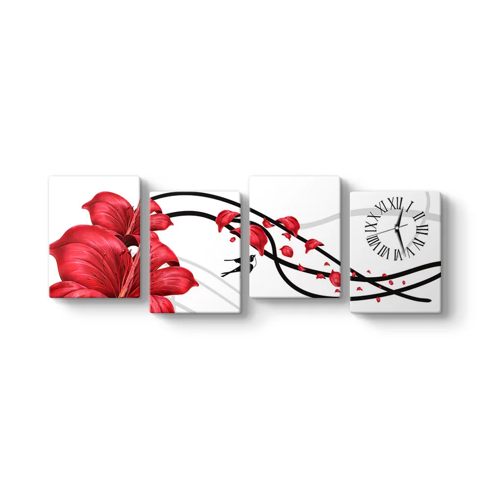 Çok uzun yıllar aynı renk, ışık ve doku kalitesini korumaktadır. Çiçek 4 Parçalı Tablo Saat ve diğer tüm ürünler güneş, ışık, flaş gibi etkenlerden etkilenmez.