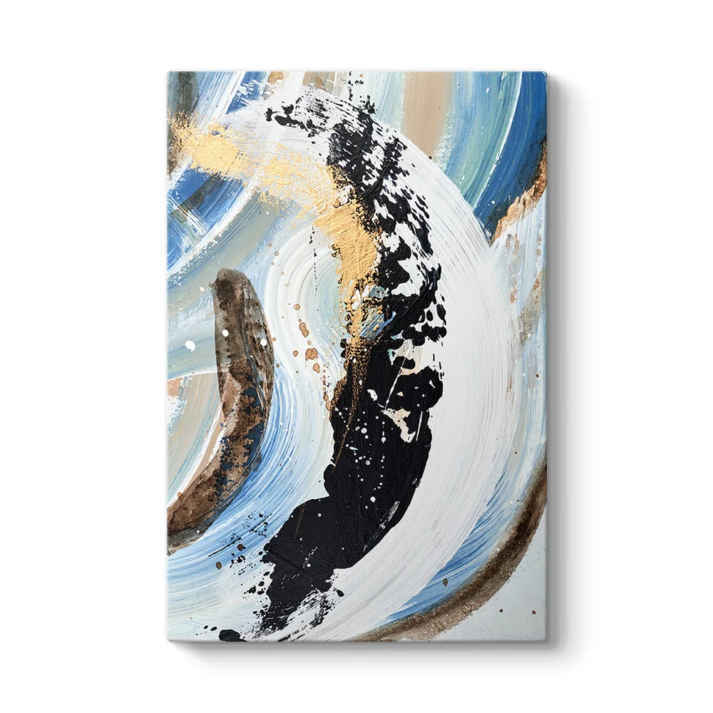 Okyanusun derinliklerinden gelen bir enerji... Mavi, beyaz ve siyahın oluşturduğu güçlü dairesel formlar, aralara karışan altın renkli yansımalarla duvarlarınıza sonsuz bir hareket katıyor. Durağanlıktan uzak, akışkan ve dinamik yapısıyla bu eser, mekanın enerjisini tazelemek ve modernize etmek isteyenler için özel olarak tasarlandı.