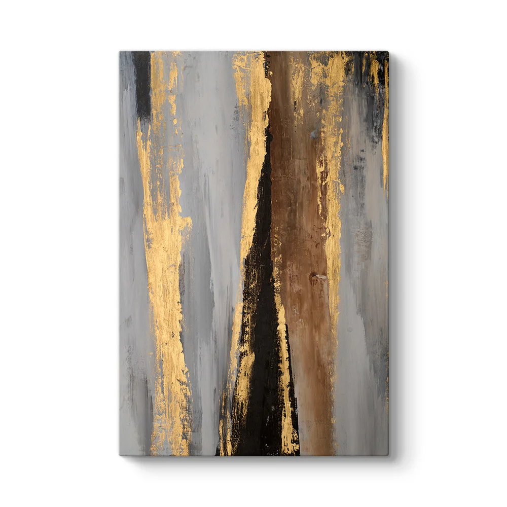 Bu tasarım, "Urban Chic" (Şehirli Şık) akımının en güçlü temsilcilerinden biridir. Arka plandaki eskitme gri dokular, şehrin dinamizmini ve brütalist yapısını simgelerken; ön plana çıkan siyah ve altın sütunlar, güç ve zenginliği temsil eder. Altın rengi detaylar, sanki zamanla aşınmış bir yüzeyin altından parlayan gizli bir hazine gibi tabloya derinlik ve gizem katar.