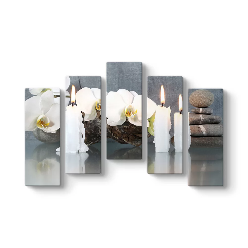 %100 pamuktan üretilen kanvas kumaşlar, uzun yıllar boyunca dayanıklı bir biçimde ürününüzü kullanmanızı sağlar. Orkideler ve Mumlar 5 Parçalı Tablo ve diğer tüm tablolar profesyonel işçilik ile hazırlanır.