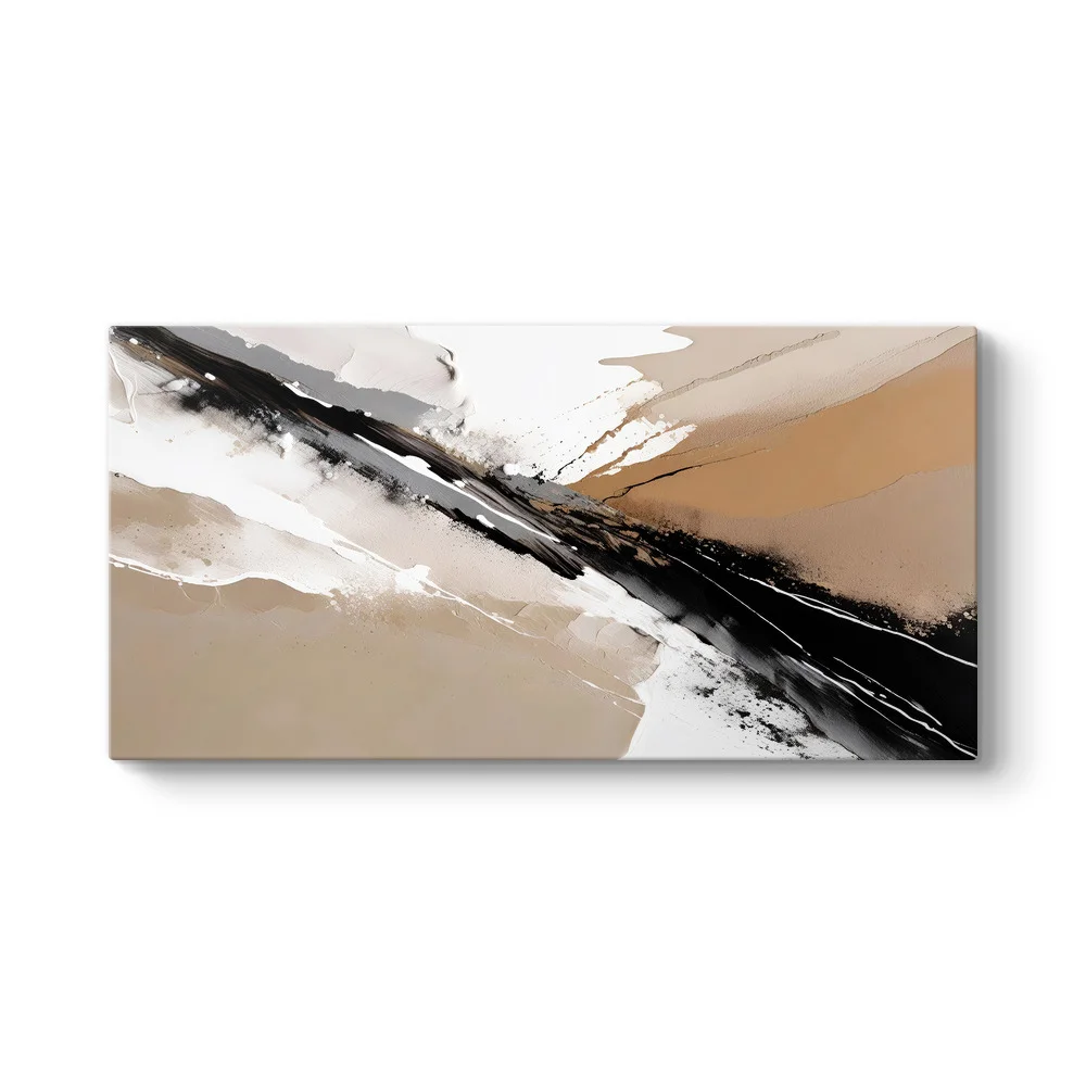 Siyah, bej, beyaz ve gri tonlarının dengeli geçişleriyle öne çıkan bu kanvas tablo, modern yaşam alanlarında sade ama etkileyici bir odak oluşturmak isteyenler için güçlü bir dekorasyon seçeneğidir. Görselde yer alan diyagonal kompozisyon, tabloya hareket kazandırırken aynı zamanda düzenli ve sofistike bir görünüm sunar. Bu sayede mekanın atmosferini yormadan güçlendiren, dikkat çekici ama ölçülü bir etki oluşturur.