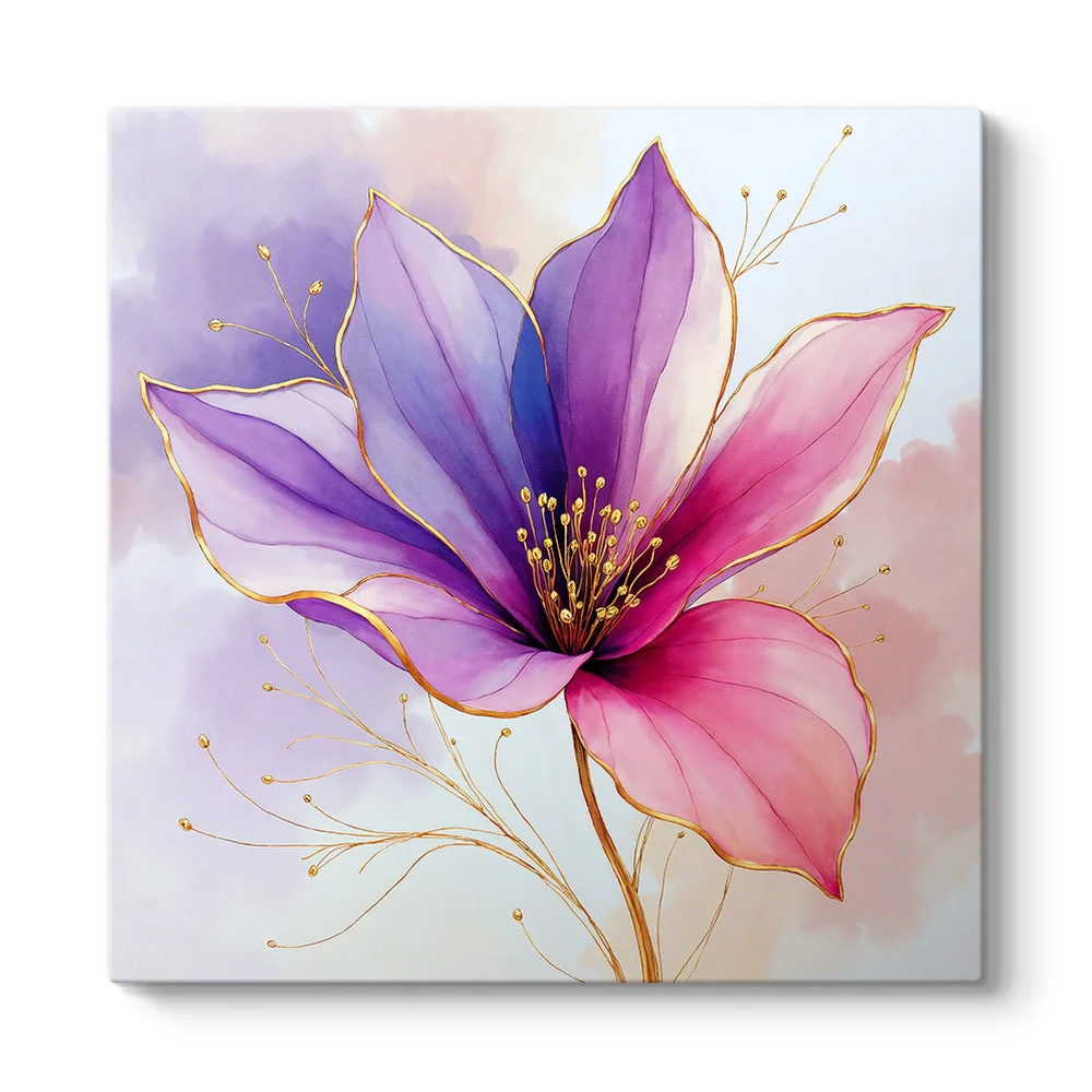 Renklerin ve doğanın soyut bir harmoniyle buluştuğu eşsiz bir tasarım... Pastel mor, canlı pembe ve derin indigo tonlarının oluşturduğu kusursuz renk geçişleri, aralara serpiştirilen altın yaldız görünümlü ışıltılı konturlar ile duvarlarınızda modern ve sanatsal bir atmosfer yaratır.