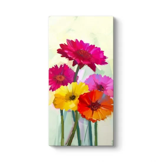 %100 pamuktan üretilen kanvas kumaşlar, uzun yıllar boyunca dayanıklı bir biçimde ürününüzü kullanmanızı sağlar. Vektörel Renkli Papatyalar Tablosu ve diğer tüm tablolar profesyonel işçilik ile hazırlanır.